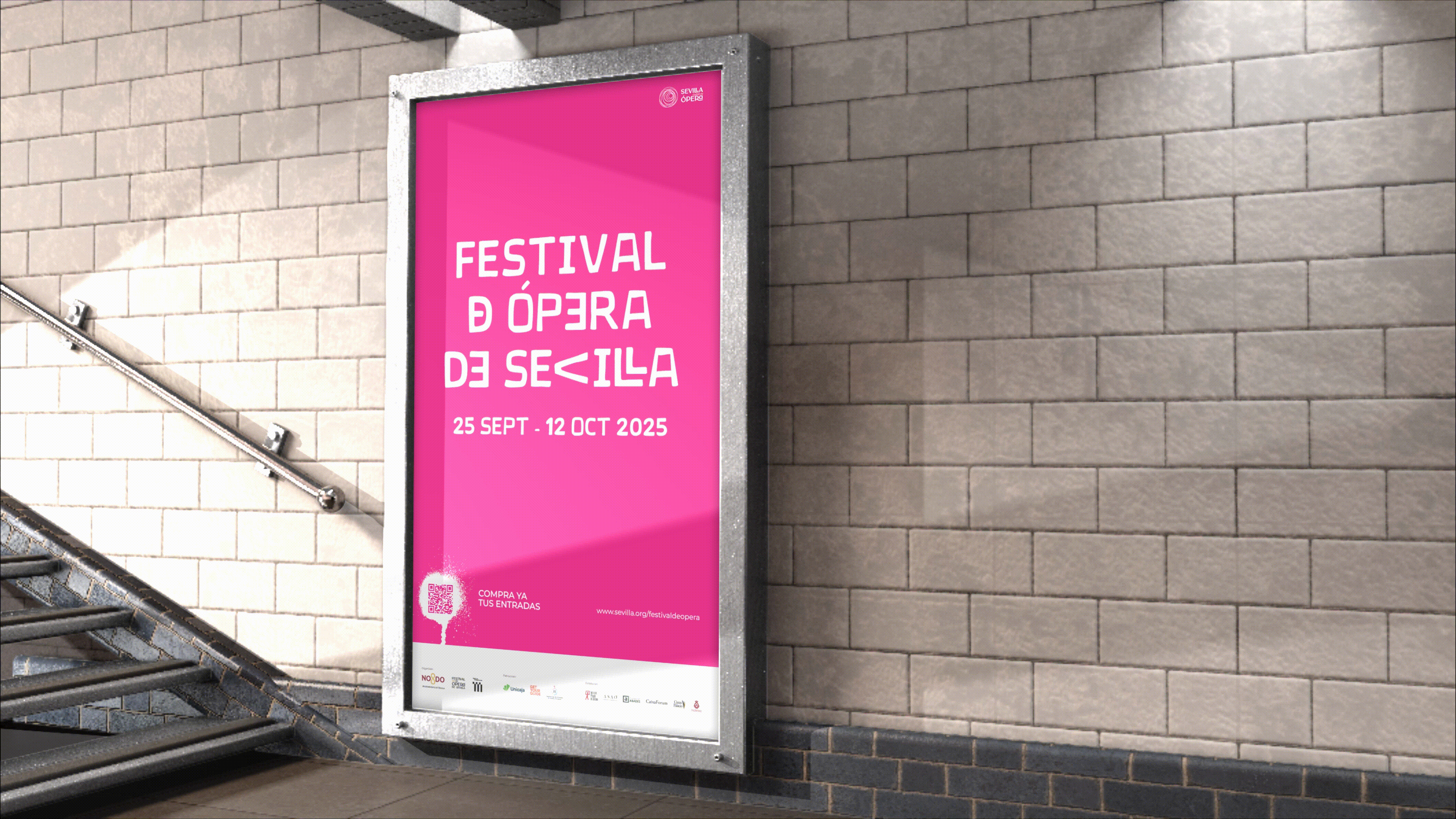 La identidad visual no se quedó en los manuales: cobró vida en la campaña urbana que viste Sevilla durante más de 3 semanas, inundando la ciudad de ópera a través de un despliegue coordinado en exterior, digital y puntos clave de tránsito y encuentro.